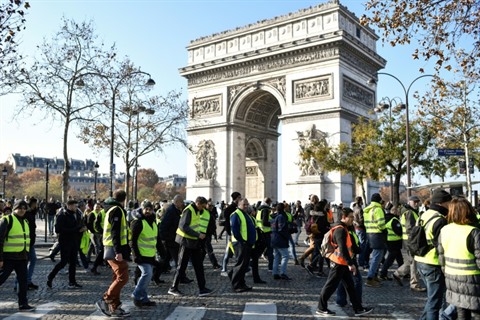 | Des gilets jaunes lors d'une manifestation à Paris, le 17 novembre 2018, contre la hausse du prix des carburants. |