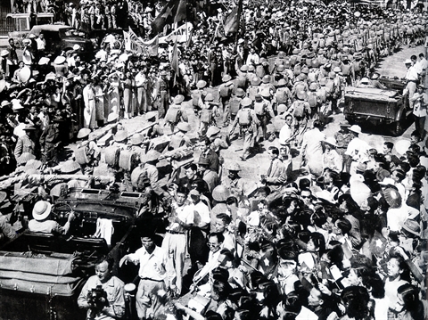 Après la défaite à Diên Biên Phu, la France est obligée de signer les Accords de Genève en juillet 1954. L’armistice et le cessez-le-feu sont obtenus entre l’armée française et l’Armée populaire vietnamienne. Il est établi que le Vietnam sera partagé temporairement en deux zones de regroupement militaire le long du 17e parallèle. La réunification, par une élection générale entre les deux zones, sera envisagée pour 1956 après référendum. Le 10 octobre 1954, à 08h00, des unités militaires de l’Armée populaire vietnamienne avancent vers Hanoi pour prendre en charge la capitale. Désormais, aucun ennemi ne posera plus le pied dans la capitale. Les Hanoïens accueillent en héros ces troupes de libération.