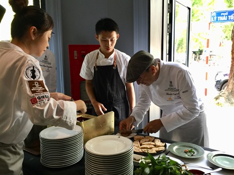 "C’est vraiment sympathique de participer à cet événement. Pour moi, la cuisine, c’est la convivialité, c’est du bonheur. J’ai envie d’être là avec mes copains dans un beau pays comme le Vietnam. J’aurai l’occasion de découvrir un peu les saveurs locales, sa tradition culinaire. En un mot, la cuisine, c’est du partage'', exprime David Gathgeber, chef du restaurant L’Assiette à Paris.