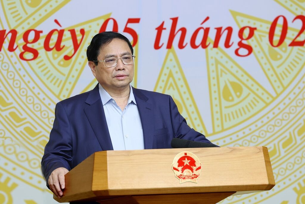 | Le Premier ministre Pham Minh Chinh s'exprime lors de la séance de travail, le 5 février. |