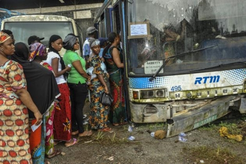 | Des électeurs font la queue pour voter à Conakry le 11 octobre pour le scrutin présidentiel. |