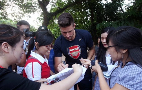 | Le joueur Olivier Giroud et ses fans vietnamiens. Photo : Quôc Khánh/VNA/CVN |