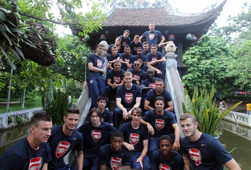 | Les footballeurs d'Arsenal à la Pagode au pilier unique, le 15 juillet à Hanoi. |
