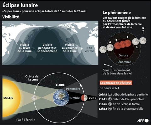 | Le phénomène de l'éclipse lunaire du 26 mai et ses phases. |