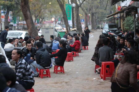 | Les Hanoiens aiment se poser pendant des heures dans les cafés sur le trottoi. |