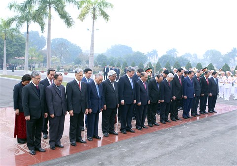 | La délégation de dirigeants du PCV, de l’État, du FPV rend hommage au Président Hô Chi Minh, mercredi 25 janvier à Hanoï. |