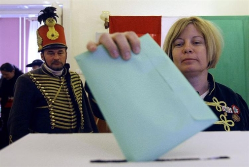 | Vote d'une Hongroise, le 6 avril pour les élections législatives |