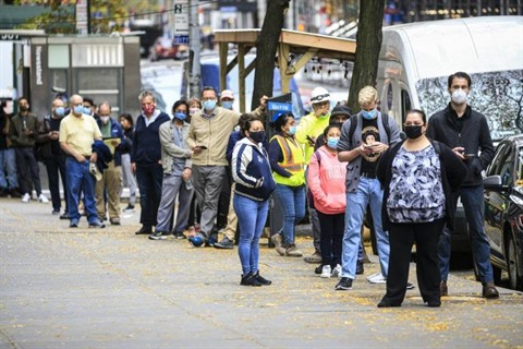 | Une file d'attente devant un centre de tests pour le COVID-19 à New York le 11 novembre. |