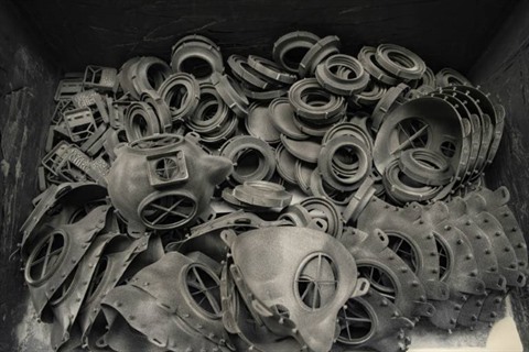 | Des éléments d'appareil respiratoire fabriqués grâce à des imprimantes 3D par Skoda à Mlada Boleslav, en République tchèque. |