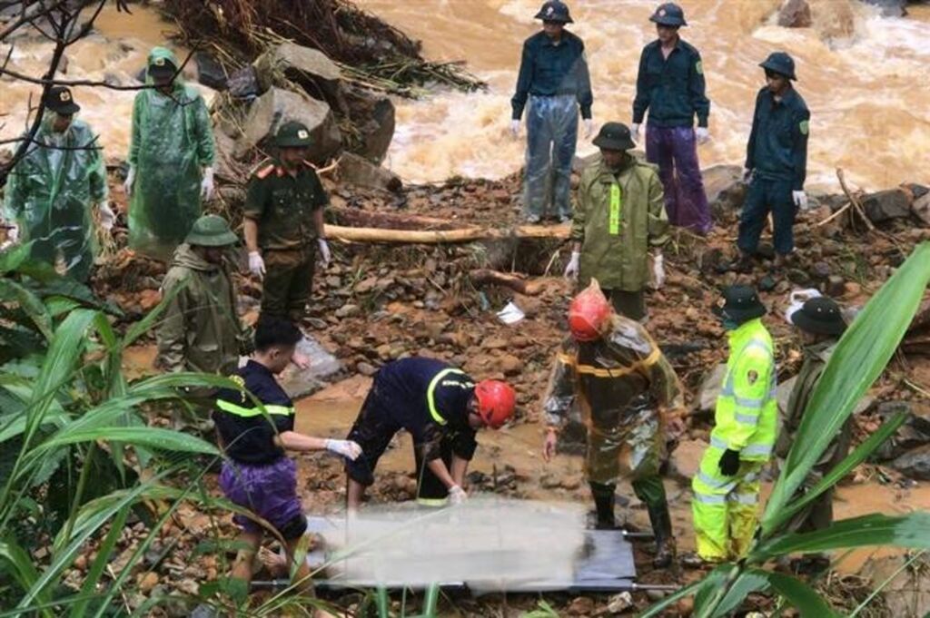 | Le corps d'un passager de camion emporté par les crues, retrouvé dans la commune de Ca Thành, district de Nguyên Binh, province de Cao Bang (Nord). |