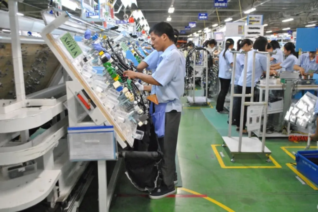 | Usine de production de câbles électriques pour voitures et motos dans la compagnie Sumi Vietnam, à capital japonais, basée dans le parc industriel de Thanh Liêm, province de Hà Nam (Sud). |