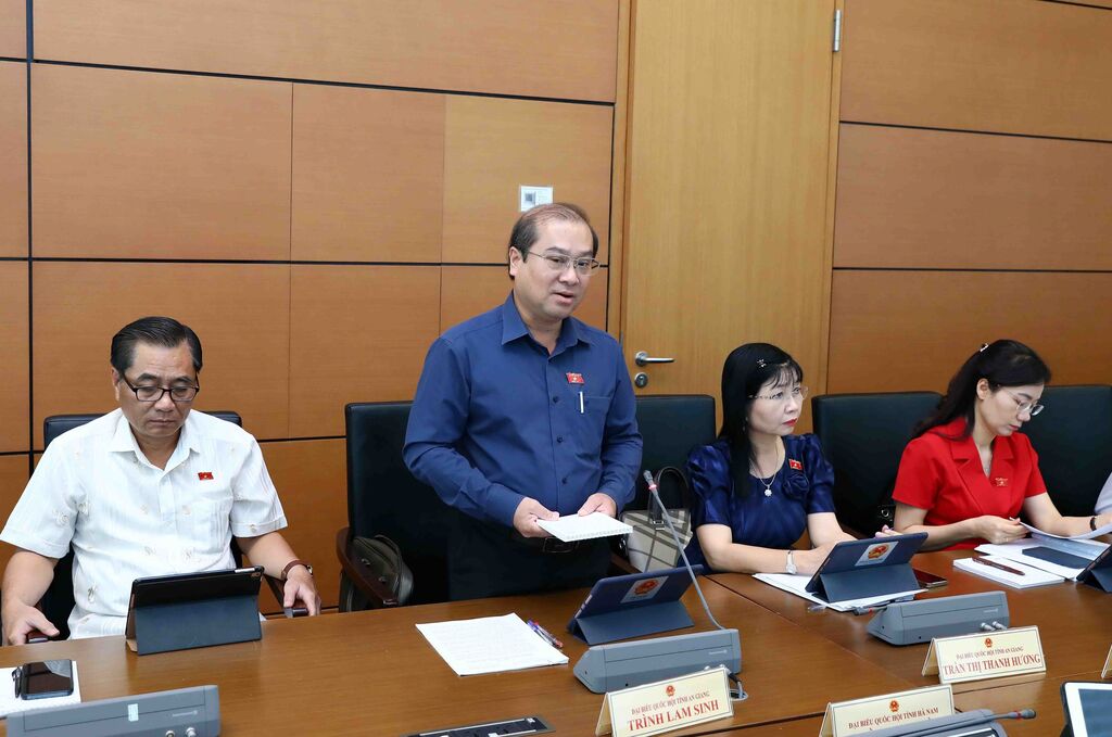 | Le député de la province d'An Giang (Sud), Trinh Lam Sinh, prend la parole lors d'une réunion en groupe de la 5e session de la XVe de l'AN, le matin du 25 mai. |