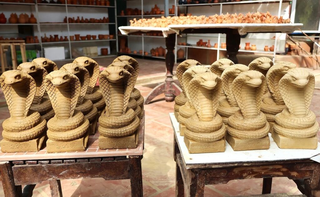 Ces jours-ci, les artisans de ce village de poterie, riche d'une histoire de 500 ans, s'emploient à préparer l'argile, à rénover les fours et à sculpter les figurines de serpents pour répondre à la demande du Têt du Serpent 2025.