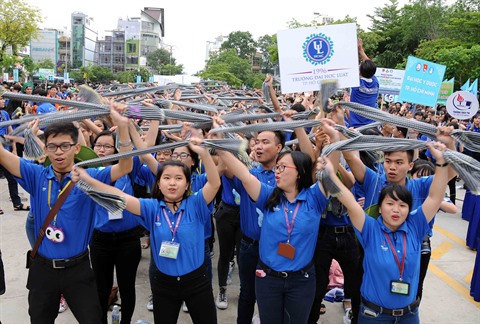 | Les jeunes de Hô Chi Minh-Ville à la cérémonie de lancement de la campagne "Été vert" 2017. |