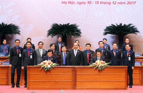 | Le Premier ministre Nguyên Xuân Phuc à la tribune lors de la séance de clôture, le 13 décembre à Hanoï. |