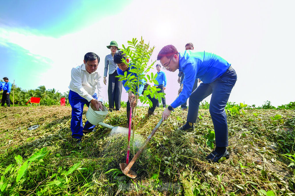 | Jeunes plantant des arbres pour un projet de reboisement à Long An (Sud). |