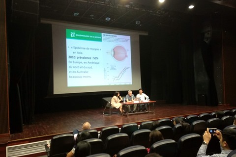 Mardi 28 mai se tenait la conférence "Lutte contre les erreurs réfractives en milieux scolaires et prévention des complications des fortes myopies" organisée par l’Institut français de Hanoï (L’Espace) en collaboration avec le Pôle de coopération en santé de l’ambassade de France au Vietnam et l’Hôpital ophtalmologique de Hanoï 2. Elle avait pour l’objectif de sensibiliser à l’importance du dépistage régulier des yeux, notamment chez les patients présentant une myopie forte. Cette détection préconisée dans cette conférence, a pour principale ambition la prévention de la cécité due à une myopie sévère, en particulier chez les jeunes.