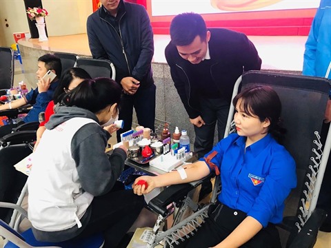 | Jeunes donnant leur sang lors d'une collecte à Hanoï. Photo : Mai Anh/CVN |