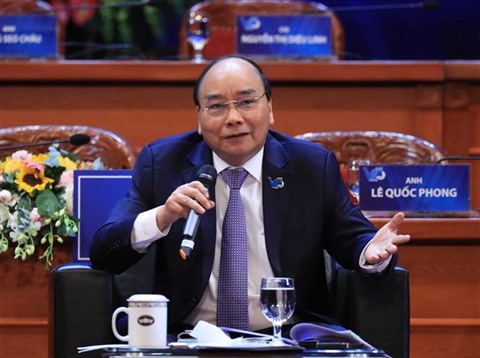 | Le Premier ministre Nguyên Xuân Phuc au dialogue avec la jeunesse vietnamienne, le 12 décembre à Hanoï. |