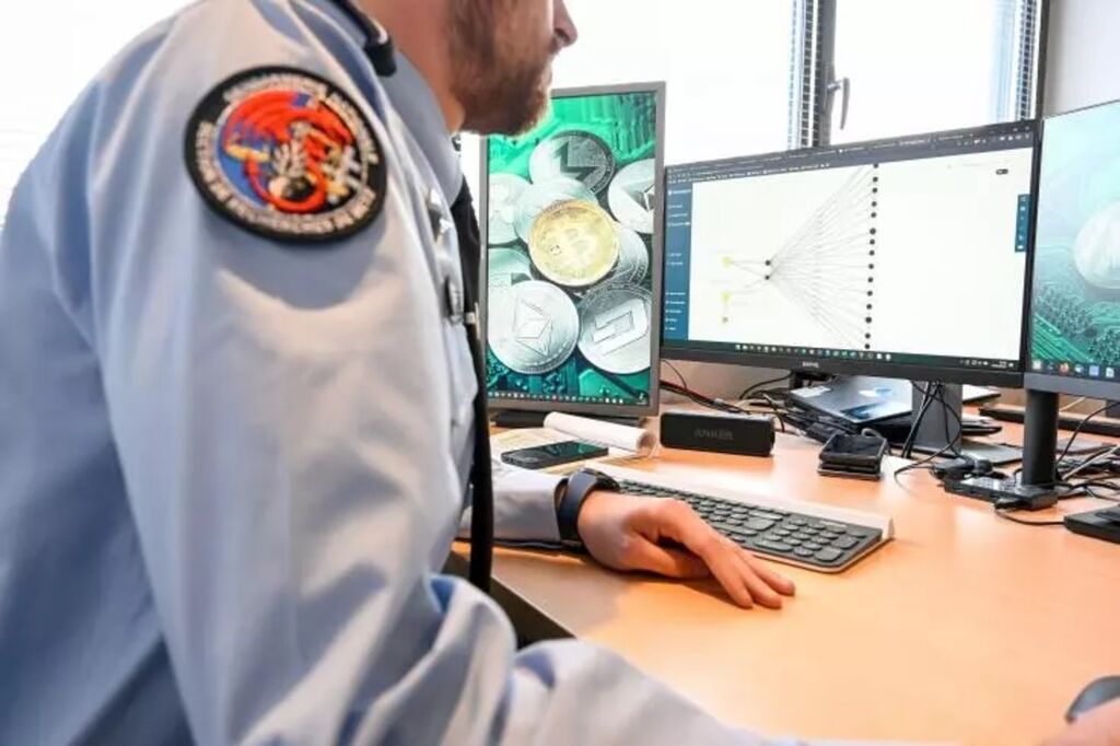 | Un gendarme français du "C3N" (Centre de lutte contre les criminalités numériques) surveille un écran, le 15 décembre 2022 à Metz. |