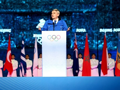 | Le président du Comité national olymmique Thomas Bach déclare "clos" les Jeux olympiques de Pékin, le 20 février. |