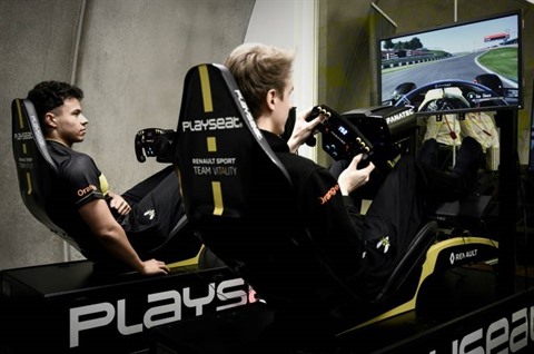 | Des joueurs de l'équipe de l'e-sport Vitality, Simon Weigang et Cedric Thome, font nue démonstration en novembre 2019. |
