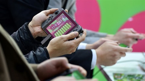 | Des joueurs s’essayent à la nouvelle Nintendo Switch lors de sa présentation officielle à Tokyo. |