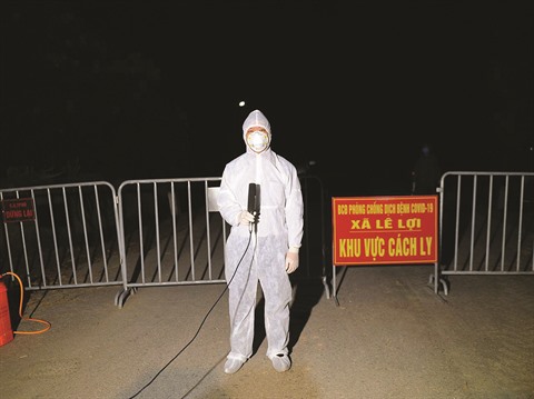 | Le journaliste Dinh Manh Tu devant une zone de quarantaine dans la ville de Chi Linh, province de Hai Duong (Nord), lors de la nuit du Réveillon 2021. |