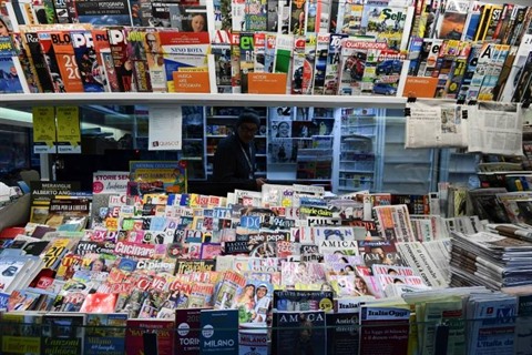 | Un kiosque à journaux à Milan, le 25 janvier. |