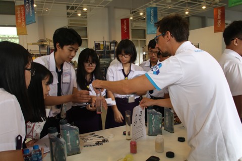 Les lycéens de Nguyên Thi Minh Khai, Lê Hông Phong et Marie Curie ont pu regarder des court-métrages sur les projets de recherche des scientifiques français et vietnamiens de l’Institut de Recherche pour le Développement (IRD) dont les capsules suivantes: ''Matières plastique: des vies sauvages''; ''Transfert de sédiments dans les rivières et impacts sur l’écosystème''; ''collecte et recyclage des déchets dans la ville de Hanoï''; ''Étude du cycle de l’eau et de la matière associée'' et ''Modélisation et simulation à base d’agents de systèmes complexes''.