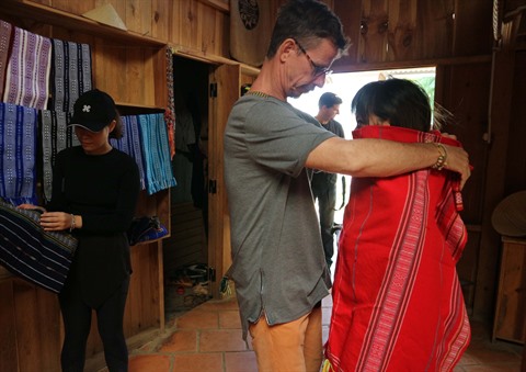 Parlant couramment l’anglais, Rolan accueille souvent des délégations étrangères dans son village. Sur place, la jeune femme leur explique la culture autochtone, la vie quotidienne et le métier de tissage de brocart de son ethnie. Après la présentation aux invités des spécialités locales, la visite se poursuit avec la découverte du village.