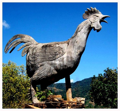 Mais, c’est en 1978 que l’architecte Lu Truc Phuong, touché par l’histoire, décide de construire une statue du coq à neuf ergots. Cette œuvre pèse près de 8 tonnes, mesure 3,2 m de haut et est érigée sur une butte de terre située au centre du village.