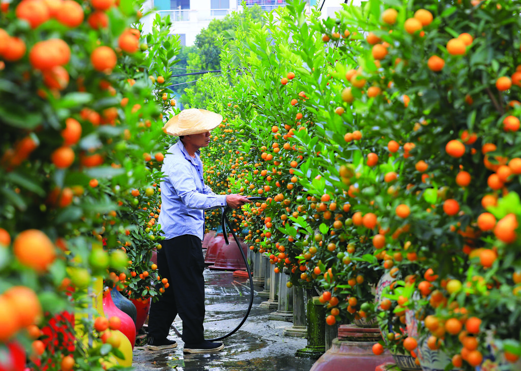 Célèbres pour leur beauté, les kumquats de Tu Liên sont devenus une véritable marque de fabrique de la capitale. En ce moment, les jardiniers s’affairent à préparer les plantes avant leur commercialisation.