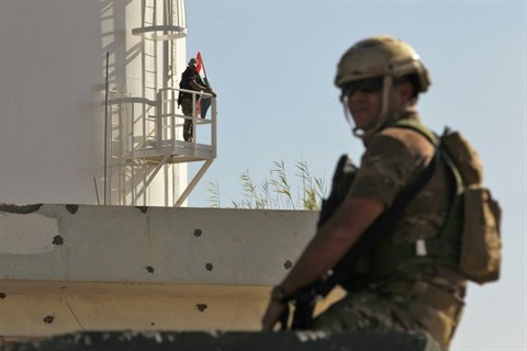 | Un membres des forces irakiennes dans les régions disputées d'où elles ont chassé les Kurdes le 19 octobre. |