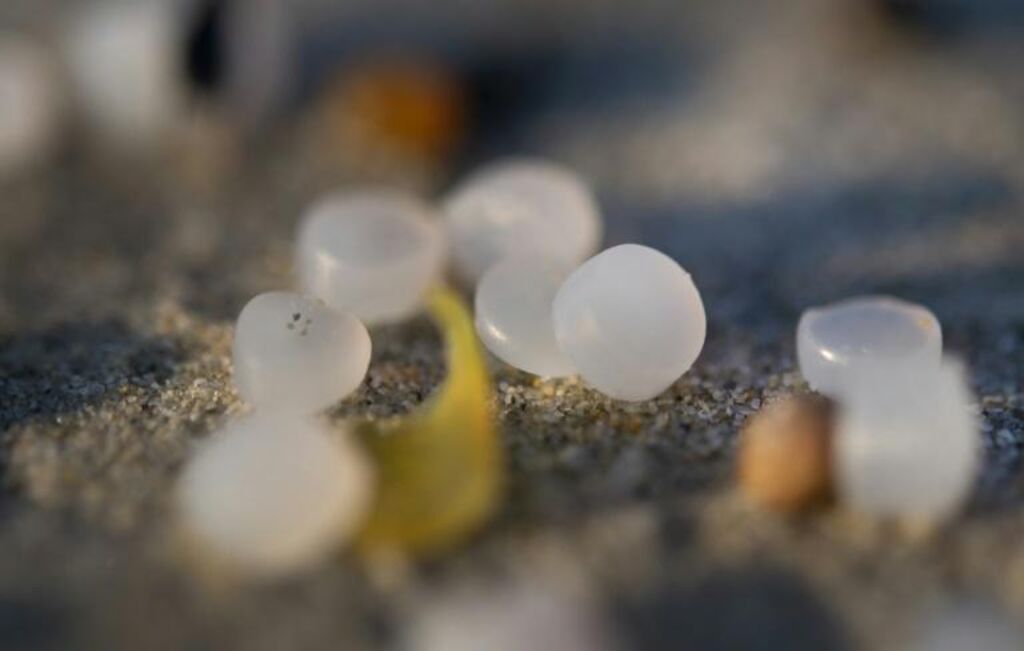 | Microbilles de platiques, appelées parfois "larmes de sirène" prises en photo à Treguennec le 24 janvier. |