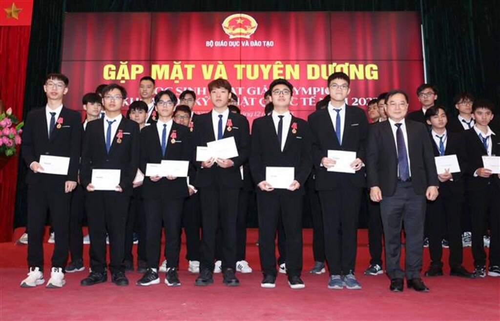 Lors de la cérémonie, la vice-ministre de l'Éducation et de la Formation, Ngô Thi Minh, a décerné le certificat de mérite du ministre à 5 lauréats des Olympiades de physique d’Asie et des Olympiades d’informatique d’Asie-Pacifique, ainsi qu’à 37 enseignants et 5 collectifs ayant enregistré des résultats remarquables dans la formation de brillants élèves.