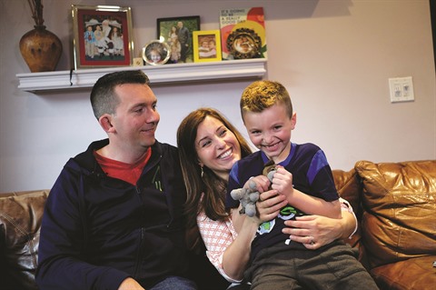 | Jacob Lemay et ses parents dans leur maison à Melrose, Massachusetts. |