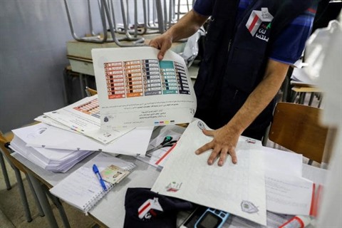 | Un agent électoral prépare les bulletins de vote pour les élections législatives au Liban, le 6 mai à Byblos, au nord de Beyrouth |