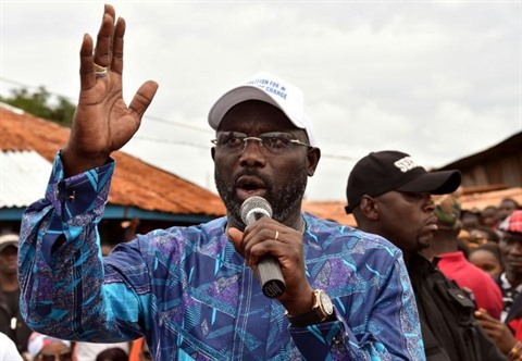 L'ancien footballeur George Weah, candidat à la présidentielle, lors d'un meeting de campagne, le 8 octobre à Monrovia. Photo : AFP/VNA/CVN |