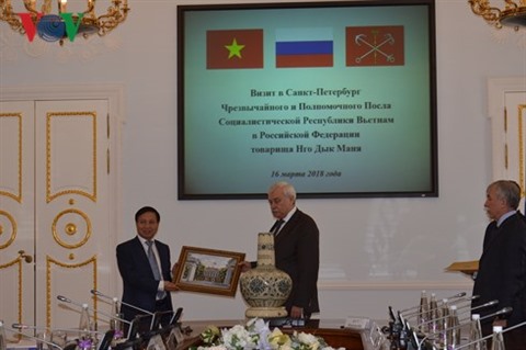 Le diplomate vietnamien Ngô Duc Manh a rencontré le gouverneur de Saint-Pétersbourg Georgy Poltavchenko vendredi 16 mars lors de son premier voyage de travail dans la deuxième plus grande ville de Russie par sa population, après la capitale Moscou.