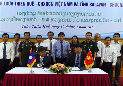 | Cérémonie de signature de MoU sur la coopération Thua Thiên-Huê - Salavan en matière de gestion des frontières. |