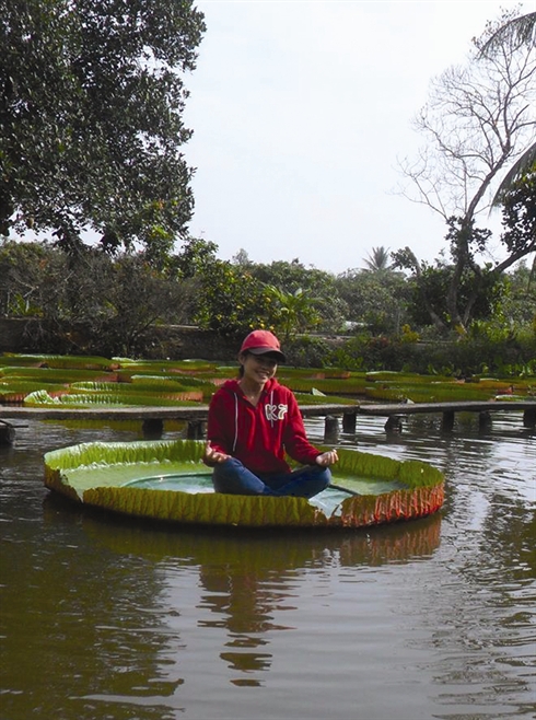 | La feuille du lotus-roi, très épaisse, peut supporter sans problème une personne de 70 kg. |