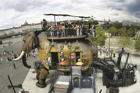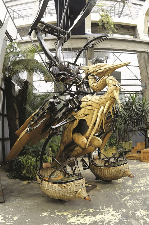 L’œuvre la plus magistrale et la plus célèbre étant «Le grand éléphant». Cet animal articulé mesure 12 m de haut, 8 m de large, 21 m de long pour un poids de 48 tonnes d’acier et de bois. Il évolue à une vitesse de 1 à 3 km/h actionné par un moteur de 450 CV et peut transporter 50 passagers. C’est l’attraction qui obtient le plus de succès et elle a récemment atteint le chiffre record de 6.000 visiteurs en une seule journée.