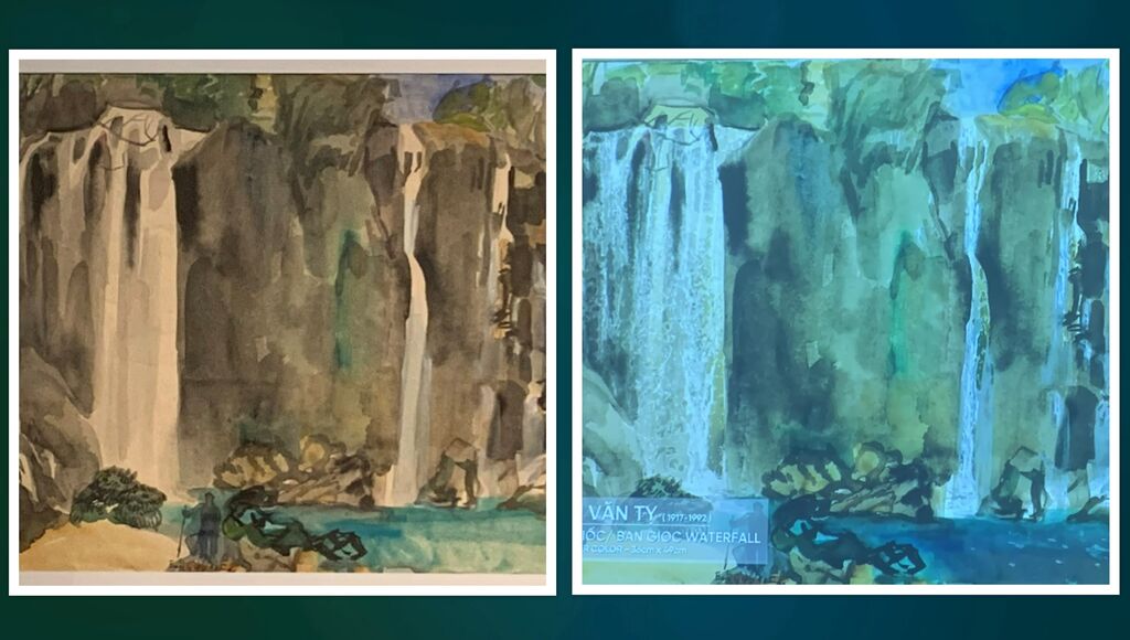 | "Thac Ban Giôc" de Nguyên Van Ty. Les œuvres originale (gauche) et numérique. |