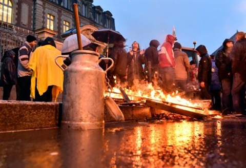 Le soir du 21 janvier à Quimper, plusieurs dizaines d'agriculteurs du Finistère avaient déversé du fumier et incendié des pneus, avant d'être délogés par les forces de l'ordre. D'autres avaient aussi manifesté le même jour dans les Pays de la Loire, à Laval (Mayenne) et dans la Sarthe.