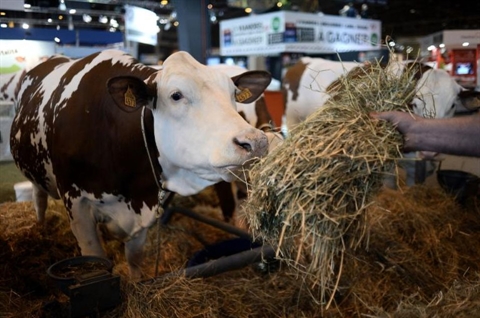 | Une vache le 20 février 2015 au Salon de l'Agriculture à Paris. |