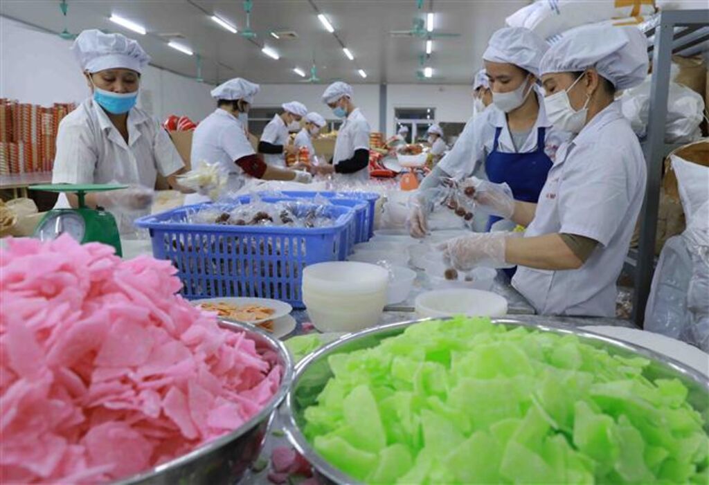 | Production de confiture au service du Têt de la compagnie Hanobaco, à Hanoï. |