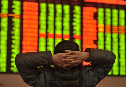 | Un investisseur observe les mouvements boursiers sur un écran à Fuyang, dans l'Est de la Chine, le 4 janvier |