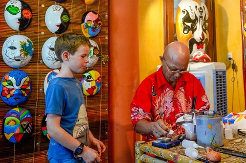 Les touristes peuvent apprendre les secrets de la fabrication des masques dans la boutique du peintre Bùi Quy Phong, au 66 rue Bach Dang, à Hôi An. Un cours dure généralement deux heures et on y apprend les quatre étapes principales de la confection d’un masque.