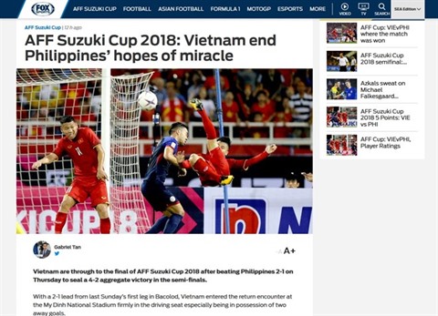 "AFF Suzuki Cup 2018 : Le Vietnam met fin aux espoirs de miracle des Philippines" était le titre d’un article sur le site de Foxsportasia publié le même jour après la fin du match.